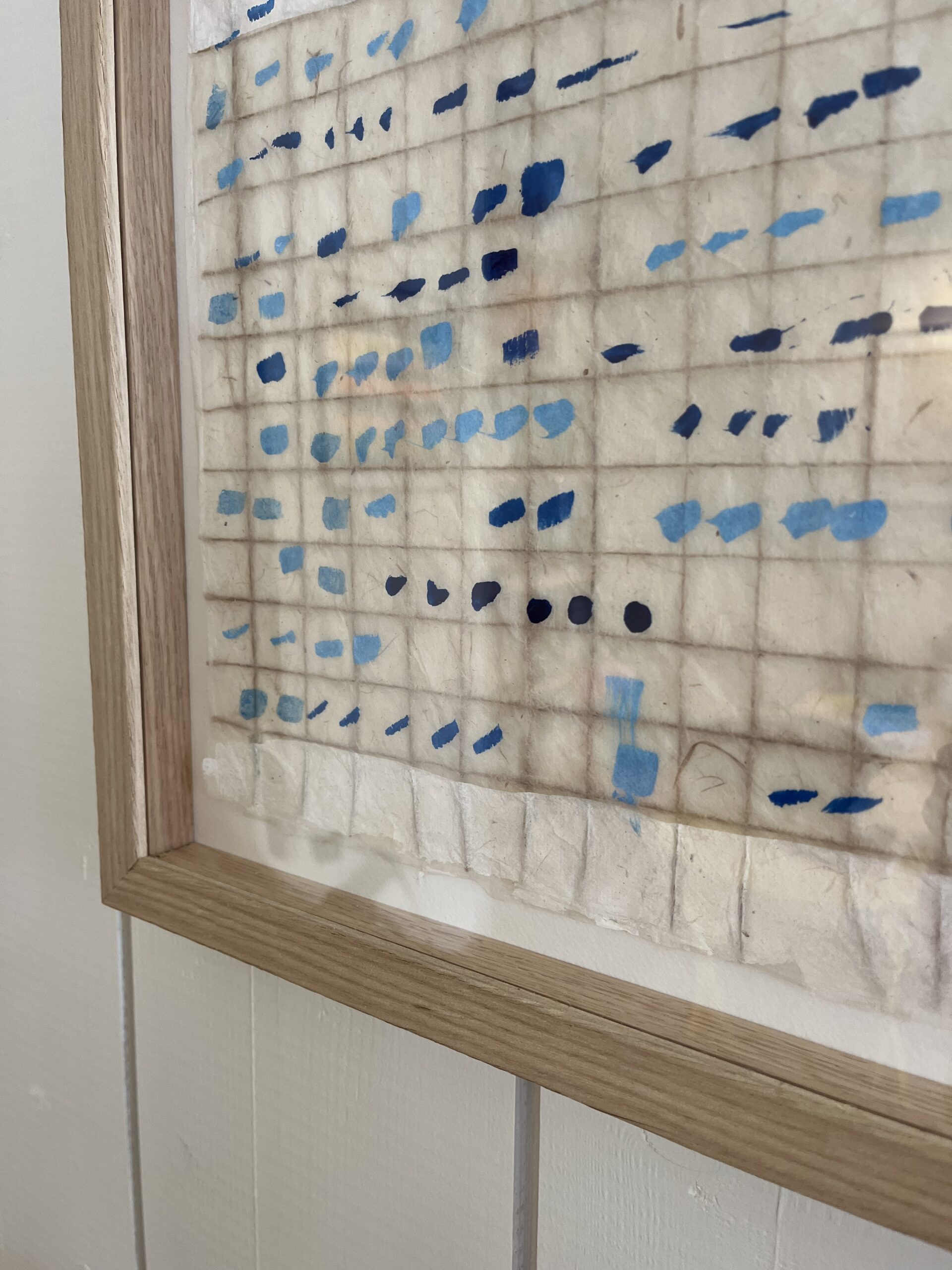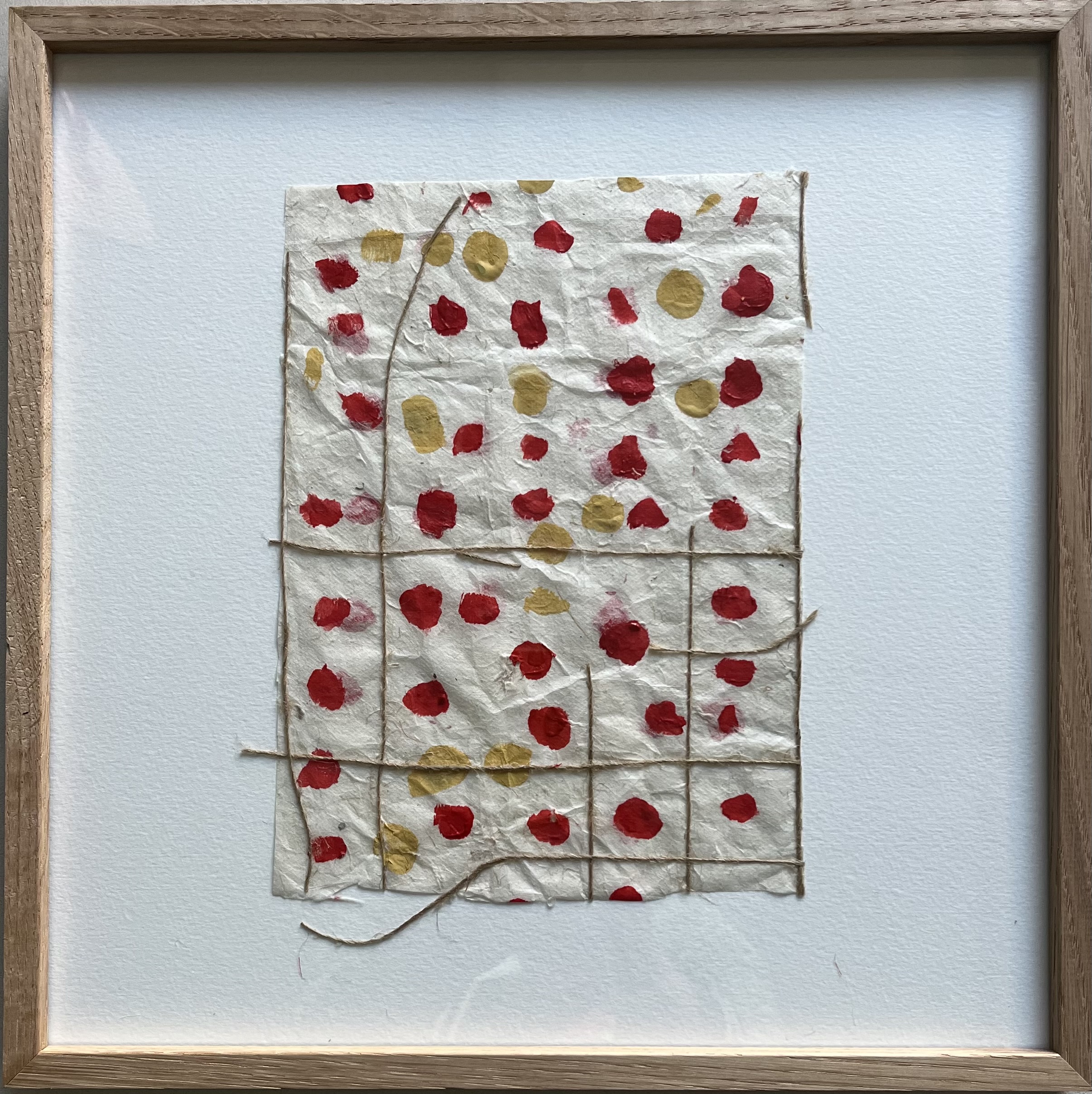 « J’aime le papier Lokta, son quadrillage. J’aime le déchirer, le recoudre, jouer avec, délier les fils comme les cases. Comme si je raccommodais les mémoires, réparais les liens. Et surtout, j’aime me laisser surprendre par le hasard, la beauté du geste, celle qui va à l’essentiel. » Catherine Danou