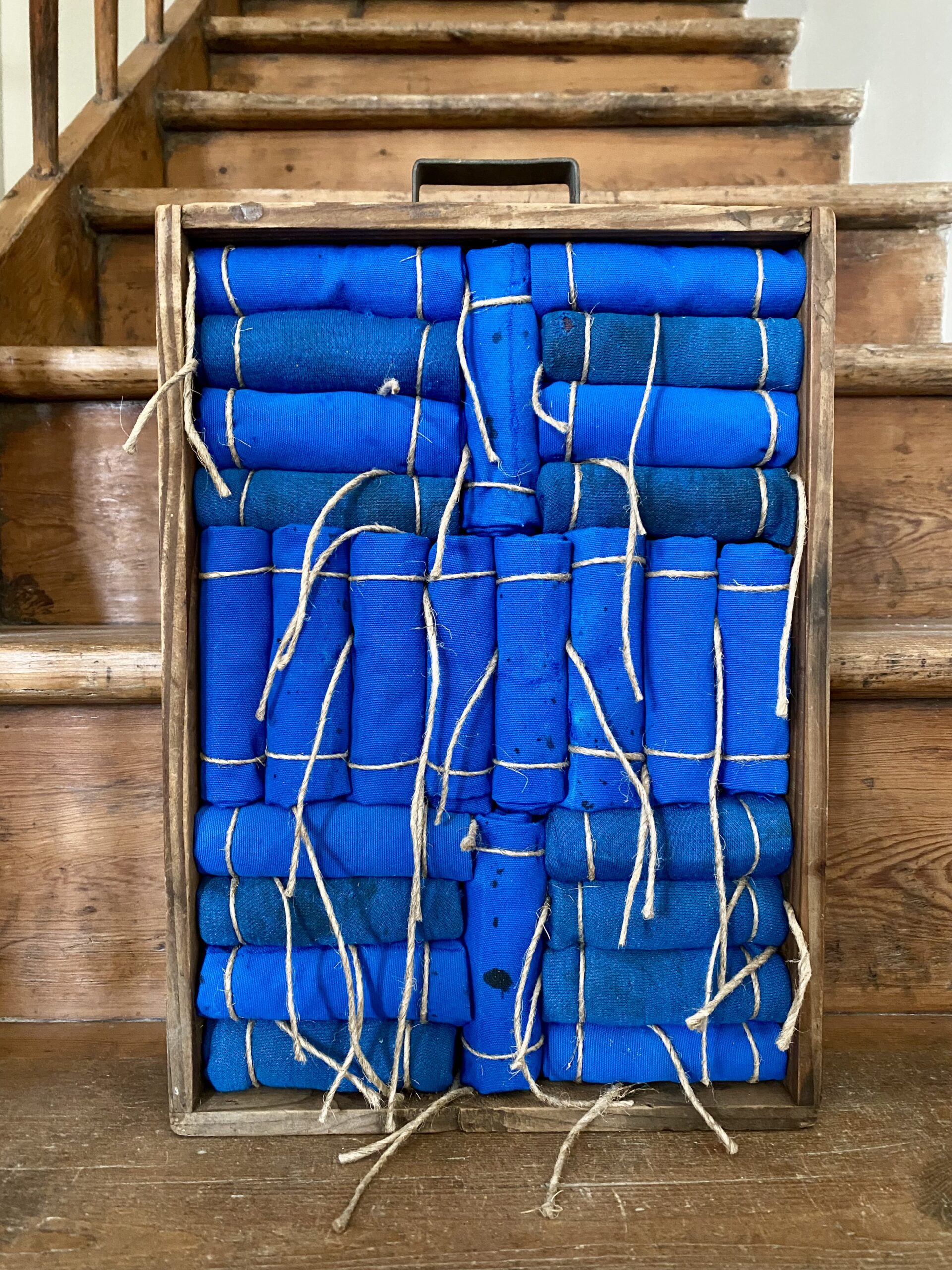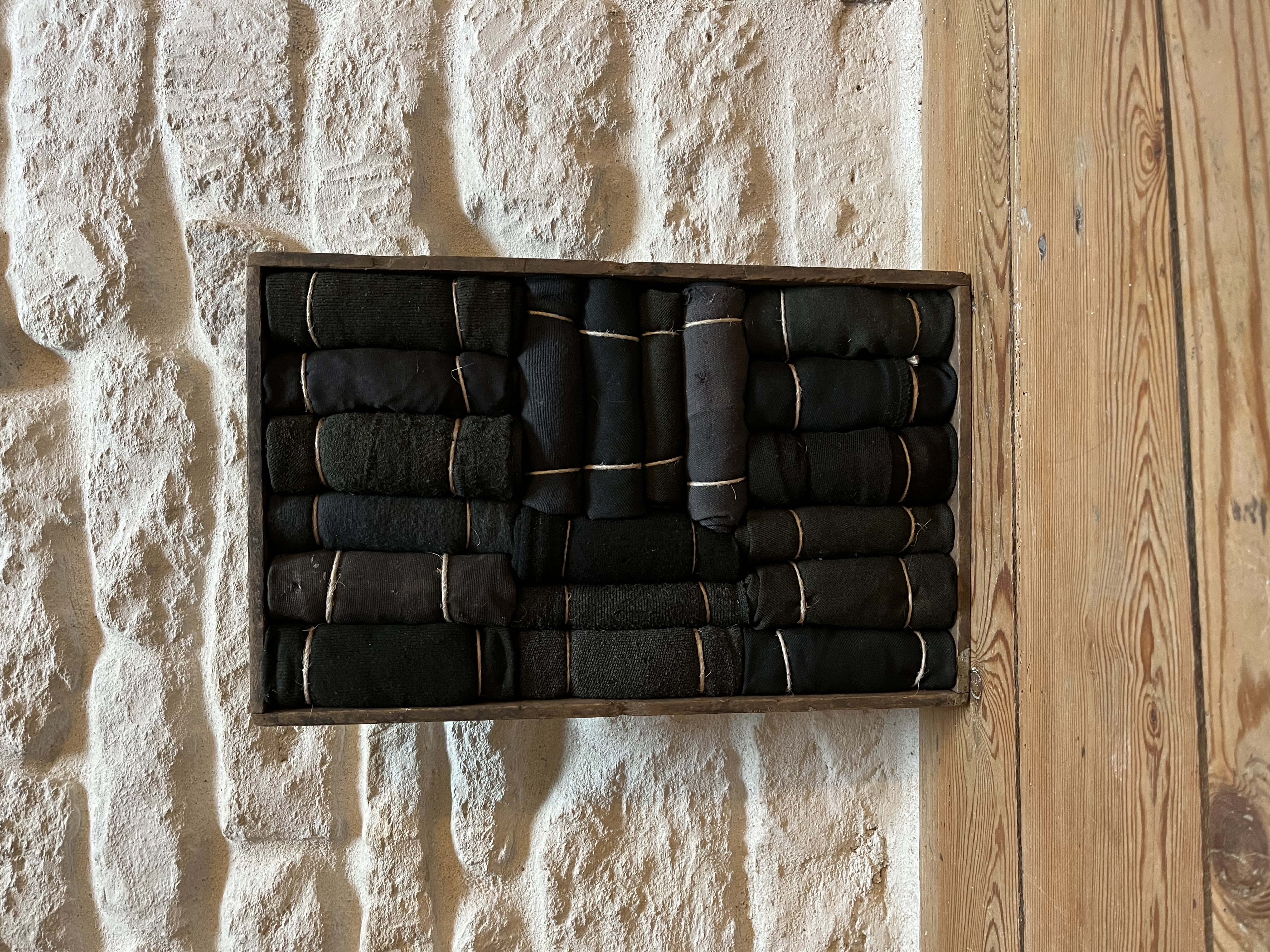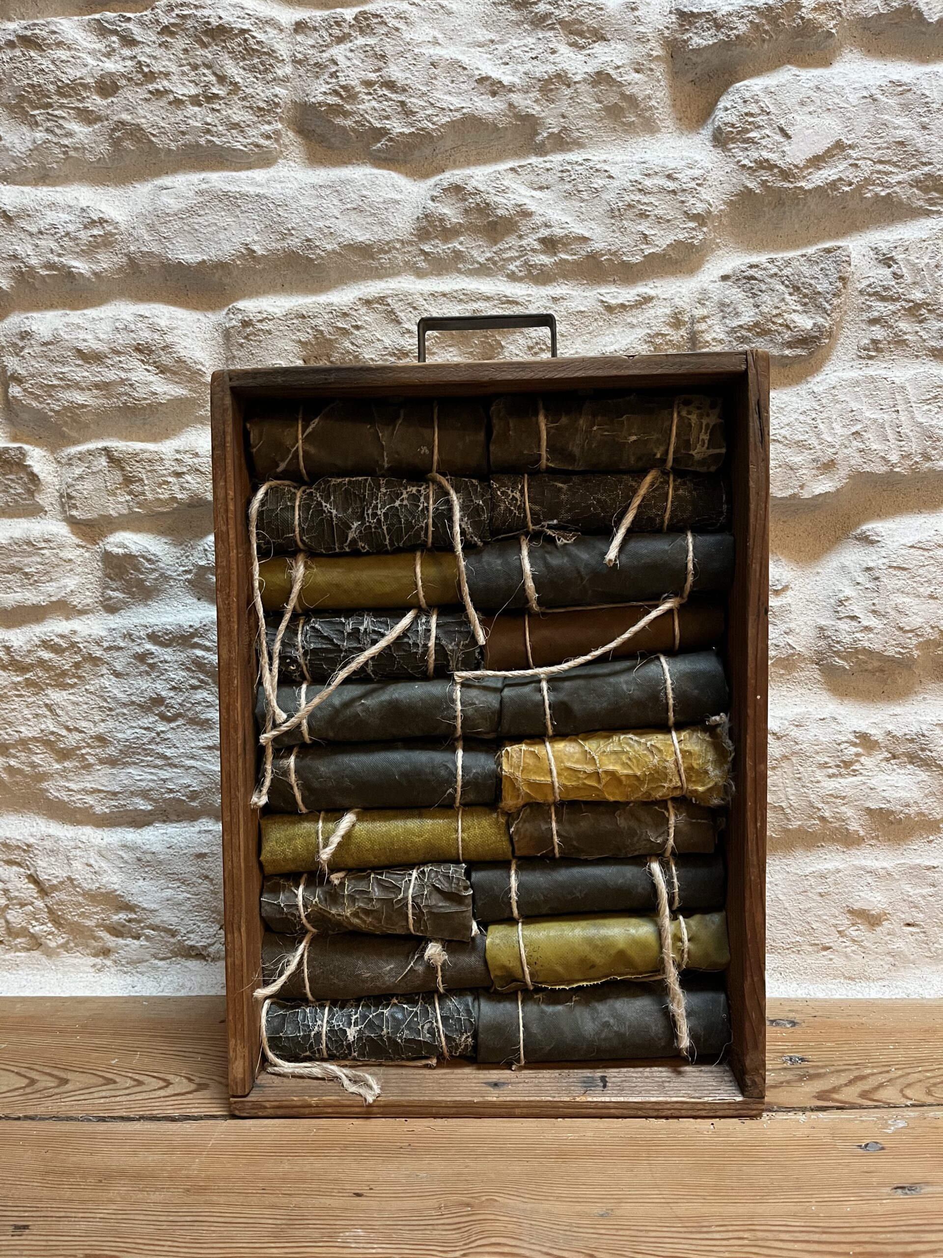Ma collecte : des tissus échoués, chiffons abandonnés par la mer dans le sable, fragments de mémoire, vêtements élimés venus du large, vestiges d’un monde flottant.