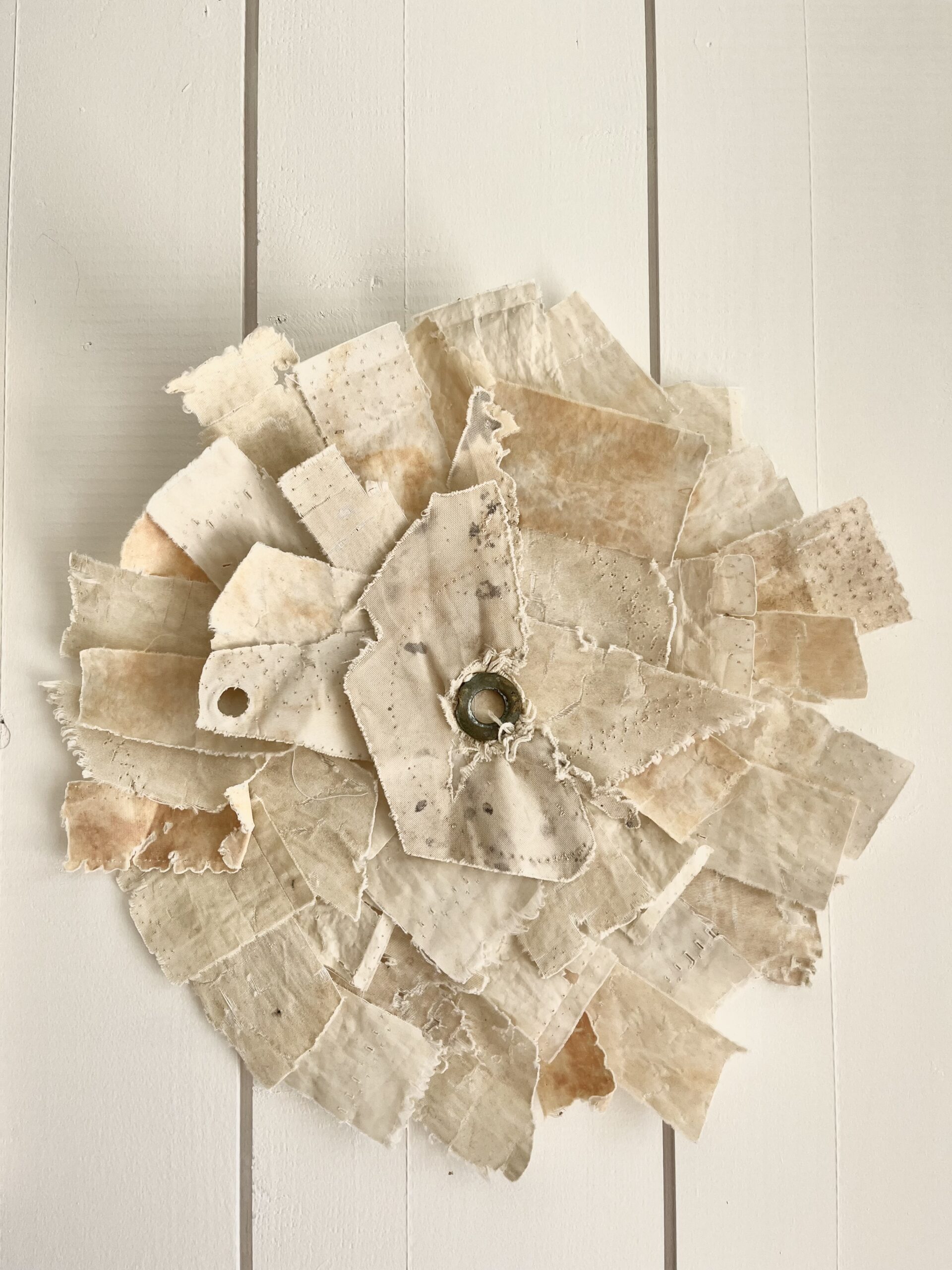 Par le jeu des métamorphoses, je redonne corps à des matières désaffectées, issues du rebut du monde, épuisées, grignotées. Je découds, recolle, assemble les fragments. J’interroge les lignes, les tâches, les accidents. Je tente de reconstituer les bribes d’une histoire décousue. »